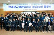 한국현대미술신문 기자 | 완주군시설관리공단이 12월 31일, 완주군시설관리공단 2층에서 2025년 을사년 종무식을 열고, 지난 1년간의 성과를 돌아보며 새로운 도약을 다짐했다. 이날 종무식은 유희태 완주군수, 유의식 완주군의회 의장, 군 유관부서, 공단 임직원 등 주요 내외빈이 참석해 공단의 2025년을 함께 돌아봤다. 행사는 성과 영상 상영으로 시작해 군수, 군의장 및 이사장 송년사, 유공 직원 표창 순으로 진행됐으며, 공단 구성원들의 열정과 노력을 되새기고 지난 1년간 공단이 걸어온 발자취와 미래 비전을 함께 공유하는 뜻깊은 시간이 마련됐다. 완주군시설관리공단은 2024년 10월 출범 이후 ▲공영마을버스 ▲고산자연휴양림 ▲공설장사시설 ▲공영주차장 ▲종량제봉투 판매사업 등 주요 수탁사업을 안정적으로 운영하며 군민 생활과 밀접한 공공서비스의 질을 높이는데 주력해 왔다. 특히 출범 초기의 조직 안정화, 근무체계 정립, 대민 서비스 개선 등 다양한 혁신적인 노력을 통해‘군민 가까이, 군민 중심의 공단’으로 자리매김하고 있다. 2026년에는 완주군으로부터 4개시설(삼례청소년수련관, 봉동근로