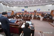 한국현대미술신문 원진 기자 | 강릉시의회는 12일 제326회 강릉시의회(제2차 정례회) 제2차 본회의를 개의했다. 이날 제2차 본회의에서는 '강릉시의회 의원 공무국외연수 규칙 전부개정 규칙안'을 의결했으며, '2026년도 당초예산안' 및 '2026년도 기금운용계획안'등 9건의 안건을 의결했다. 2026년도 당초예산안의 총 규모는 전년 대비 4.9%증가한 1조 5124억 1천만 원으로 편성됐으나, 일반회계 세출예산에서 세 개 부서, 네 개 사업에 총 7억 2691만 7천 원을 삭감하여 수정 가결했다. 2026년도 기금운용 계획안은 조성 계획에 따라 525억 7700만 원으로 원안가결했다. 이어서 김홍수 의원의 “옥천동 주민센터 이전 필요성”를 주제로, 박경난 의원의 “청소년 활동 지원 관련 방안”를 주제로, 이용래 의원의 “공군본부 월호평동 비행장 확장 반대”를 주제로, 김현수 의원의 “AI 선도도시 강릉시 조성 방안”를 주제로 한 10분 자유발언이 이어졌다. 제326회 강릉시의회(제2차 정례회)는 오는 15일 각 상임위원회에서 '2025년도 제2회 추가경정 예산안' 및 '2025년도 기