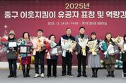 한국현대미술신문 박재남 기자 | 천시 중구는 2025년 한 해 지역 민관 협력 복지안전망 구축에 이바지한 12명의 구민에게 표창을 전달하고, 그간의 노고를 격려하며 감사의 뜻을 표했다고 29일 밝혔다. 이를 위해 중구는 지난 24일 중구 제1청 대회의실에서 김정헌 중구청장, 중구 이웃지킴이 등 100여 명이 참석한 가운데 ‘중구 이웃지킴이 유공자 표창 및 역량 강화 교육’을 개최했다. ‘이웃지킴이’는 민관 협력 위기가구 발굴 체계로, 지역사회 내에서 위기가구를 찾거나 이를 지원하는 활동에 자발적으로 참여하는 ‘명예 사회복지 공무원’으로 활약하고 있다. 특히 구는 올해 복지위기 가구 발굴·지원 활동에 적극적으로 참여하며, 구정 발전에 이바지한 ‘중구 이웃지킴이’ 12명(시장상 1명, 구청장상 11명)을 선정해 ‘민관 협력 활성화 유공자 표창’을 전달했다. 또한, 유공자 표창에 이어 권종희 NLP 코칭 아카데미 대표를 강사로 초청해 ‘사각지대 발굴과 유형별 대화법’을 주제로 ‘이웃 지킴이 역량 강화 교육’을 진행했다. 이를 통해 ‘고독사’를 예방하고, 고독사의 주요 원인인 사회적 고립에 선
