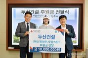한국현대미술신문 원진 기자 | 두산건설은 지난 28일 원주시 장애인복지시설 지원을 위한 기부금 1,000만 원을 전달하며 지역사회를 위한 나눔을 실천했다. 전달식은 원주시청에서 진행됐으며, 김문기 부시장과 두산건설 오세욱 상무, 두산건설We’ve 골프단 프로골퍼 박결 선수 등이 참석했다. 이번 기부금은 사회복지공동모금회 강원도지회를 통해 원주시 장애인복지시설 7곳에 전달될 예정이다. 두산건설은 장애인의 자립과 사회활동 참여 확대를 위해 지속적으로 사회공헌 활동을 진행하고 있다. 대표적으로 2023년과 2024년, ‘두산건설We’ve 챔피언십’ 갤러리 티켓 판매 대금을 장애인 체육 종목 및 선수 후원에 활용했으며, 지난해에는 골프단 재능 기부를 통해 조성된 기부금을 청각 장애 아동에 전달했다. 최근에는 프로골퍼 신지애 선수와 매칭그랜트 방식의 공동 기부를 진행하며 사회 공헌의 폭을 더욱 넓혔다. 선수 개인의 선한 영향력과 기업의 사회적 책임을 결합한 이번 기부를 비롯해, 두산건설은 스포츠 연계 사회 공헌과 지역사회 협력 활동을 통해 사회적 약자를 위한 실질적인 지원을 이어가고 있다. 두산