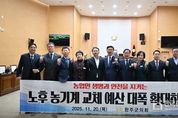 한국현대미술신문 기자 | 완주군의회는 20일 열린 제297회 제2차 정례회 제1차 본회의에서 김재천 부의장이 대표 발의한 ‘노후 농업기계 교체 사업 예산 정상화 촉구 건의안’을 만장일치로 채택했다. 이번 건의안은 고령화와 농촌 인력 부족이 심화되는 상황에서, 대기오염과 농업인 재해의 주요 원인으로 지적돼 온 노후 농업기계 교체 사업이 축소된 데 대한 우려를 담고 있다. 김재천 부의장은 제안 설명에서 “노후 농업기계는 생산성 저하나 불편의 문제가 아니라, 대기오염과 안전사고를 동시에 유발하는 농촌의 대표적 위험 요소”라며 “오래된 트랙터와 콤바인의 미세먼지 배출량은 동급 화물차의 세 배에 달하고, 매년 1,200톤이 넘는 오염물질이 농촌에 흩뿌려지고 있다”고 지적했다. 이어 그는 “고장과 안전장치 미비로 인한 농업기계 사고는 농업인의 생명을 위협하는 중대 재해로 이어지고 있다”며 “실제 농업기계 재해는 사업이 중단된 이후 증가세를 보여 2021년 1만 2,000여 건에서 2023년 1만 6,000여 건으로 늘어났다”고 설명했다. 또한 정부가 2012년 이전 생산 장비 2만 5,600대를 3년간 조기