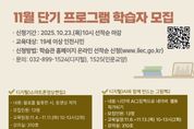 한국현대미술신문 박재남 기자 | 인천광역시교육청평생학습관은 오는 11월 운영되는 단기 프로그램의 수강생을 모집한다. 이번 프로그램은 AI(인공지능)·디지털 활용 능력 강화와 인문소양 증진을 주제로 시민들이 짧은 기간 내 배움을 얻을 수 있도록 기획됐다. 운영 강좌는 ▲스마트폰영상편집2 ▲AI(인공지능)와 함께 만드는 그림책2 ▲AI(인공지능)를 활용한 작사·작곡하기2 ▲(시니어) 연말연시는 숏츠와 함께 영상 카드 만들기 ▲한국미술 시대를 잇다: 전통에서 발견하는 현대 등 5개다. 디지털 역량 강좌 4개는 급변하는 환경에 대응해 시민의 정보 활용 능력을 높이는 데 중점을 두었으며, 인문교양 강좌는 전통과 현대미술을 잇는 인문학적 접근을 통해 문화 감수성을 높이는 기회를 제공한다. 수강 신청은 10월 23일 오전 10시부터 평생학습관 누리집에서 가능하며, 자세한 사항은 공지사항에서 확인하거나 평생교육부로 문의하면 된다.