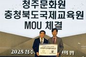 한국현대미술신문 신정은 기자 | 충청북도교육청 직속기관인 국제교육원(원장 서강석)은 10일 오후 6시, 청주문화원(원장 강전섭)과 도내 이주배경학생 및 가족의 문화예술 역량 함양과 지역 문화예술교육 활성화를 위한 업무협약을 체결했다고 밝혔다. 협약식에는 서강석 원장과 강전섭 청주문화원장을 비롯해 4명의 관계자가 참석했다. 이번 협약은 이주배경학생들이 다양한 문화예술 활동을 체험하고 지역사회와 자연스럽게 소통할 수 있는 기반을 마련하기 위해 추진됐으며, 양 기관의 프로그램과 자원을 공유‧활용하여 지속 가능한 협력 체계를 구축하는 것을 목표로 했다. 주요 내용은 ▲문화예술 기반 인적‧물적 자원 상호 활용 ▲양 기관이 추진하는 문화예술 분야 사업 홍보 협조 ▲이주배경학생 및 가족 대상 문화예술 공연 관람 지원 등이다. 국제교육원은 이번 협약을 통해 학생들이 문화예술을 매개로 지역사회와 교류하고, 다양한 경험을 쌓으며 문화적 감수성을 높일 수 있도록 지원할 계획이다. 서강석 국제교육원장은 “이주배경학생과 가족들이 문화예술 활동을 통해 지역사회와 더욱 가까워지고, 일상 속에서 문화를 즐길 수 있