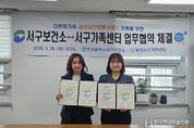 한국현대미술신문 정소영 기자 | 부산서구보건소는 부산서구가족센터와 ‘다문화가족 공공보건의료서비스 지원’을 위한 업무협약을 체결했다. 지난 26일 오전 서구보건소 소장실에서 열린 협약식에는 양태인 보건소장과 이미경 센터장을 비롯한 양 기관 관계자들이 참석한 가운데 진행됐다. 이번 협약은 지역 내 증가하는 다문화가족의 공공보건의료서비스 이용 접근성을 높이고 건강 격차를 해소하여 안정적인 지역사회 정착을 지원하기 위해 추진됐다. 양 기관은 협약을 통해 ▲다문화가족 대상 공공보건의료서비스 이용 지원 ▲보건소 보건사업 및 건강관리 서비스 안내 및 연계 ▲건강증진 프로그램 운영 협력 ▲통번역 지원 및 대상자 발굴 등 다양한 분야에서 상호 협력하기로 했다. 특히, 서구보건소는 보건소 이용 안내, 건강상담 및 한방진료 등 맞춤형 건강서비스를 제공하고, 부산서구가족센터는 다문화가족 참여자 모집과 사업 홍보, 통번역 지원 등을 맡아 사업의 실효성을 높일 계획이다. 부산서구보건소 양태인 소장은 “이번 협약을 통해 다문화가족이 보건의료 서비스를 보다 쉽게 이용할 수 있도록 지원하고, 건강한 생활환경 조성에