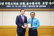 한국현대미술신문 신정은 기자 | 충주시는 지난 10일 오후 2시 3층 중회의실에서 ‘2025년 자랑스러운 교통운수종사자’에게 표창패를 수여했다. 시는 매년 교통편의 증진, 선진 교통문화 정착 등을 위해 헌신한 운수업계 종사자들을 선정해 노고에 감사하고 직업적 사명감을 높이는 취지로 ‘자랑스러운 운수종사자 표창패 수여식’을 진행하고 있다. 올해 수상자는 택시업계, 화물업계, 교통지도 봉사단체, 자동차 정비업체 등에서 각각 추천받은 운수업계 종사자 24명이다. 특히, 승객의 안전한 승하차를 도와줬다는 시민제보를 통해 추천받은 충주교통 정인교 기사 등 지역사회의 시민 일상 속에서 활약한 운수종사자들이 선정돼 의미를 더했다. 조길형 충주시장은 “어려운 여건 속에서 교통 서비스 제공에 최선을 다해주신 모든 교통·운수종사자 분들에게 감사드린다”며 “운수업계와 적극 소통하여 더 나은 교통문화 정착에 노력하겠다”고 말했다.