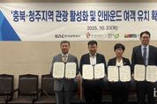한국현대미술신문 신정은 기자 | 청주시는 한국공항공사 청주공항, 한국관광공사 세종충북지사, 충북문화재단과 23일 청주국제공항에서 청주공항 중국 노선 활성화 및 인바운드(외국인의 국내 관광) 관광객 유치 확대를 위한 업무 협약을 체결했다. 이번 협약은 중국 단체 관광객의 무비자 입국 한시 허용*을 계기로, 각 기관이 보유한 전문성과 네트워크를 활용해 관광과 항공의 상생 활성화를 강화하기 위해 마련됐다. 4개 기관은 최근 변화하는 방한 외국인 관광 추세에 맞춰 중국, 일본, 대만 등 청주공항 노선과 연계 인바운드 관광객 유치를 위한 실질적 협력을 강화하기 위해 긴밀히 협력할 예정이다. 특히 이번 중국인 유학생과 연계한 VFR* 관광 활성화로 안정적인 인바운드 수요를 창출하기 위한 팸투어 등 다양한 사업을 추진할 예정이다. 정상미 시 문화체육관광국장은 “이번 협약을 계기로 청주공항을 통한 중국 방한 관광객들이 예전 수준으로 회복되는 출발점일 되기를 희망한다”며 “각 기관이 긴밀한 협력을 통해 더 많은 관광객이 찾고 다시 찾고 싶은 도시 청주가 될 수 있도록 노력하겠다”고 말했다. 한편, 현재