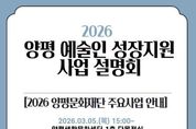 한국현대미술신문 배윤섭 기자 | 양평문화재단은 오는 3월 5일, 양평생활문화센터 1층 다목적실에서 지역 예술인의 지속 가능한 활동을 지원하기 위한 ‘2026 예술인 성장지원사업 설명회’를 개최한다고 밝혔다. 이번 사업은 지역 내 신진·청년 예술인을 중심으로 창작 역량에 비해 부족했던 성장 기회를 제공하고, 기존 지원사업을 일회성 지원으로 그치지 않고 지속적인 지원 체계를 구축하기 위해 마련됐다. 재단은 예술인 스스로 활동할 수 있는 환경을 만들고 지역 예술 생태계를 활성화하는 것을 목표로 하고 있다. 설명회는 크게 세 가지 내용으로 구성된다. 첫째, 2026년 진행 예정인 공모 지원사업 계획을 공유한다. 양평문화재단의 주요 사업인 ‘모든예술31’, ‘물맑은 어울림 음악회’, ‘생활문화지원사업’은 물론 외부 기관의 공모사업 정보도 함께 제공될 예정이다. 둘째, 예술인을 위한 행정 실무 교육이 진행된다. 공모사업의 구조와 신청 절차, 사업계획서 작성 방법, 정산 시 유의사항 등 현장에서 필요한 실무 중심 교육을 통해 예술인의 행정 부담을 완화할 것으로 기대된다. 셋째, 향후 예술인 지원 확