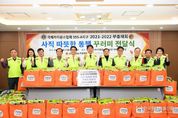 한국현대미술신문 정소영 기자 | 부산 동래구는 지난 23일 국제라이온스협회 355-A(부산)지구 2021-2022 부총재회(회장 맹성재)가 사직종합사회복지관에 동래구 취약계층을 위한 400만 원 상당의 ‘사직 따뜻한 동행 꾸러미’ 80상자를 기탁했다고 밝혔다. 이번에 전달된 ‘사직 따뜻한 동행 꾸러미’는 2021-2022 부총재회 회원들이 어려운 이웃들의 생활에 실질적인 도움이 되기를 바라는 마음으로 샴푸, 치약, 주방세제 등 생필품을 손수 가방에 담아 제작한 것이다. 맹성재 회장은 “지역의 어려운 이웃들과 함께하겠다는 뜻을 담아 준비했다”라며 “앞으로도 꾸준한 나눔과 봉사로 지역사회에 보탬이 되겠다”라고 전했다. 장준용 동래구청장은 “지역을 위해 꾸준히 나눔과 봉사를 실천해 주시는 국제라이온스협회 355-A(부산) 지구 2021-2022 부총재회에 깊이 감사드린다”라며 “이러한 따뜻한 손길이 지역사회에 널리 퍼져 모두가 함께 살아가는 동래를 만드는 데 큰 힘이 되고 있다”라고 말했다. 한편, 국제라이온스협회 355-A(부산) 지구 2021-2022 부총재회는 무료 급식소 성금 지원과 배식 봉사,