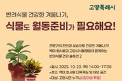 한국현대미술신문 배윤섭 기자 | 고양특례시는 반려식물의 건강한 겨울나기를 위한 맞춤 해법을 제공하는 ‘그린케어, 겨울 대비 반려식물 돌보기 행사’를 오는 10월 23일 오후 2시부터 5시 30분까지 백마 화사랑에서 개최한다고 밝혔다. 먼저 백마 화사랑 야외 공간에서는 고양시식물병원 전문가가 상주해 시민이 직접 가져온 반려식물에 대해 1:1 현장 진단을 제공하고, 병해충, 과습 등 식물의 상태에 따라 분갈이, 영양제 처방 및 맞춤형 월동 관리법을 안내한다. 별도 신청 없이 당일 현장 접수로 참여 가능하다. 실내에서는 ‘반려식물 동절기 핵심 관리법’을 주제로 체험형 특강이 진행된다. 겨울철 생육 관리 요령, 휴면기 대비 가지치기 및 분갈이 실습 등 내년 봄의 성장을 위한 전문적인 지식을 습득할 수 있다. 특강은 백마 화사랑 누리집에서 선착순 12명까지 신청할 수 있다. 시 관계자는 "겨울은 식물이 가장 취약해지는 시기인 만큼, 이번 행사를 통해 전문가의 과학적인 진단과 맞춤형 솔루션으로 반려식물과 더욱 건강하고 풍요롭게 겨울을 나시길 바란다”고 전했다. 행사에 대한 자세한 내용과 특강 신청은 백마 화사