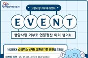 한국현대미술신문 신정은 기자 | 청양군이 오는 11월 1일 고향사랑기부제 모금 증대와 기부제 활성화를 위해 청양군에 10만원 이상 기부한 분들을 대상으로 연말정산 사전 이벤트를 실시한다고 밝혔다. 이벤트는 오는 11월 1일부터 시작해 선착순 150명 마감시 종료되며, 대상자에게는 모바일 상품권 만원권(스타벅스 e카드 교환권 1만원권)이 증정된다. 군은 고향을 사랑하는 마음으로 기부에 동참하는 분들에게 실질적인 혜택을 제공하고, 더 많은 인원이 고향사랑기부제에 관심을 갖도록 하기 위해 이번 이벤트를 기획했다고 밝혔다. 참여 방법은 온라인으로 고향사랑e음 또는 위기브 홈페이지를 통해 청양군에 10만 원 이상 기부하거나, 전국 농협(NH) 창구에서 기부하면 자동으로 이벤트에 응모된다. 경품 발송 대상자 안내는 선착순 마감 후 10일 이내 개별 문자로 통지될 예정이다. 윤청수 미래전략과장은 “이번 이벤트를 통해 많은 분이 고향사랑기부제에 참여하여 고향에 대한 따뜻한 마음을 나누고, 동시에 연말정산 혜택까지 미리 챙길 수 있길 바란다”며 “더불어 연말까지 다양한 홍보를 통해 고향사랑기부제 활성화
