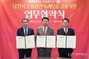 한국현대미술신문 신정은 기자 | 당진시는 6일 당진시청 접견실에서 오성환 당진시장과 함종덕 하나은행 충남북영업본부 지역대표, 조소행 충남신용보증재단 이사장이 참석한 가운데 소상공인 특례보증 금융지원을 위한 업무협약을 체결했다고 밝혔다. 이번 협약은 경기 침체와 고금리 기조가 장기화하는 상황에서, 신용등급이 낮거나 담보력이 부족해 자금 조달에 어려움을 겪는 소상공인에게 안정적인 금융지원을 제공하기 위해 마련했다. 협약에 따라 당진시와 하나은행은 각각 3억 원씩 총 6억 원을 공동 출연하며, 충남신용보증재단은 이를 기반으로 출연금의 12배에 해당하는 총 72억 원 규모의 특례보증을 제공하게 된다. 이를 통해 소상공인들은 상대적으로 낮은 금리로 운영자금 및 경영안정자금을 지원받을 수 있다. 앞서 당진시는 지난해 1월에도 7억 원을 출연해 총 84억 원 규모의 특례보증자금을 지원한 바 있으며, 이번 추가 협약을 통해 금융지원 규모를 지속적으로 확대하며 소상공인 지원에 힘을 쏟고 있다. 오성환 당진시장은 “경기 침체와 고금리로 경영에 어려움을 겪고 있는 소상공인분들께 이번 특례보증 확대가 실질적