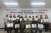 한국현대미술신문 배윤섭 기자 | 양평군은 26일 평생학습센터에서 ‘2026년 양평군 평생학습매니저 위촉식’을 성황리에 개최했다. 군은 이번 위촉식에서 평생학습매니저 역량 강화 연수를 이수하고 활동 신청서를 통해 지속적인 참여 의사를 밝힌 인원을 대상으로, △학습 여행 운영 참여 실적 △회의 참여도 △관련 사업 기여도 등 활동 전반의 성실성을 평생학습매니저 평가표에 따라 종합적으로 심사해 최종 17명의 평생학습매니저를 공식 위촉했다. 위촉된 평생학습매니저들은 앞으로 1년간 지역 평생학습 활성화를 위해 주민의 학습 참여를 독려하고, 평생교육 프로그램 기획·운영 지원, 학습자 상담 및 만족도 조사 등 현장 중심의 역할을 수행하게 된다. 이날 위촉식은 평생교육 관계자와 위촉자들이 참석한 가운데 △위촉장 수여 △향후 활동 계획 공유 △평생학습 발전 과제 논의 등의 순서로 진행됐다. 위촉된 매니저들은 온행복센터(읍·면·동 평생학습센터)와 우리 동네 학습공간을 중심으로 지역 맞춤형 학습 콘텐츠 개발·운영, 학습자 요구 조사, 학습 지원 체계 구축 등에 참여할 예정이다. 전진선 양평군수는 “평생학습매니저는 주민의