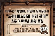 한국현대미술신문 박재남 기자 | 인천광역시교육청주안도서관은 오는 23일부터 초등 3~4학년 학생을 대상으로 ‘책열매’ 독서동아리 회원을 모집한다. ‘도전! 미스터리 추리 작가’를 주제로 한 이번 프로그램은 어린이가 독서지도 전문 강사의 지도 아래 꾸준한 독서 습관을 기르고, 또래 친구들과 책으로 소통하는 경험을 쌓을 수 있도록 마련했다. 프로그램은 매주 미스터리 주제의 다양한 책을 읽고 수수께끼 만들기, 탐정일지 쓰기, 같은 시작 다른 결론, 뒷이야기 쓰기 등의 활동을 하며, 학생들이 직접 추리 동화를 창작하는 과정으로 3월 12일부터 4월 23일까지 운영한다. 모집은 2월 23일 오전 10시부터 주안도서관 누리집에서 선착순 진행하며, 자세한 내용은 주안도서관 누리집을 확인하거나 어린이자료실로 문의하면 된다.