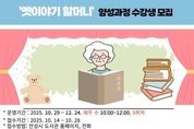 한국현대미술신문 배윤섭 기자 | 안성시 중앙도서관은 오는 10월 29일부터 12월 24일까지 매주 수요일 오전 10시부터 12시까지(총9회) 진행되는 『옛이야기 할머니』양성과정의 수강생을 모집한다. 이번 과정은 우리 전통 설화와 구전문화를 이해하고, 이를 바탕으로 어린이들에게 옛이야기를 들려줄 수 있는 이야기 구연 역량을 키우는 특화 교육 프로그램으로 교육은 송경애 강사(한국국학진흥원 및 아름다운 이야기 할머니 교육강사)가 진행하며, 이야기 전달 기법, 발성 훈련, 스토리텔링 실습 등 실질적인 교육 중심으로 구성된다. 참여 대상은 60세 이상 여성 20명으로, 접수는 10월 14일부터 도서관 홈페이지, 전화 또는 방문을 통해 신청할 수 있다. 도서관 관계자는 “지역 어르신들이 삶의 지혜와 전통 이야기를 전하며 세대 간 소통의 다리를 놓는 뜻깊은 과정이 될 것이고 본 과정을 수료한 참여자들은 2026년 ‘책 읽어주기’ 자원봉사 프로그램에 참여할 수 있도록 안내할 계획이다.”라고 전했다.