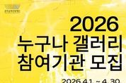 한국현대미술신문 기자 | (재)완주문화관광재단은 관내 소장품을 활용하여 군민들의 일상 생활권 내 전시 활성화를 도모하는 '2026 누구나 갤러리 : 완주 작가 작품 대여‧전시'참여기관을 오는 4월 30일까지 모집한다고 밝혔다. ‘누구나 갤러리’는 2022년부터 지역 내 유휴공간을 발굴하여 전시 공간으로 조성하는 사업으로, 올해는 관내 3개소 내외를 선정할 계획이다. 선정된 기관에는 완주 작가의 소장 미술작품을 무상 대여하며, 공간 맞춤형 큐레이션(작품 소개글, 캡션 등)을 포함하여 ‘전시 운영 패키지’를 함께 지원한다. 신청 자격은 전시 가능한 유휴 벽면을 보유한 완주군 소재 기관‧기업‧단체다. 선정된 기관은 작품 안전관리를 담당하며, 벽면 페인팅, 조명 설치 등 전시 공간 조성 비용을 분담하게 된다. 정철우 완주문화관광재단 상임이사는 “이번 사업을 통해 지역 작가들의 작품이 군민들의 일상속으로 더 가까이 다가가길 기대한다.”며, “완주군 곳곳의 유휴 공간이 품격 있는 갤러리로 변신할 수 있도록 많은 관심과 신청을 바란다.”고 전했다. 보다 자세한 내용은 완주문화관광재