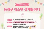한국현대미술신문 정소영 기자 | 부산 동래구는 오는 30일부터 초등학생을 대상으로 경제마켓, 모의투자, 경제 놀이 운동회 등 체험활동과 실습 중심의 다양한 활동을 통해 자기 주도적 글로벌 미래 경제 인재로의 성장을 돕고자 2026년 ‘동래구 청소년 경제 놀이터’ 참가자를 모집한다고 밝혔다. 참가 대상은 초등학교 5~6학년 또는 2014~2015년생 55명으로, 모집 시작일 기준 동래구에 주소를 두어야 한다. 특히 전년도 높은 참가 수요와 만족도를 반영해 올해는 모집 인원을 확대했다. 프로그램은 4월 25일부터 26일까지 1박 2일 숙박형으로 운영된다. 신청 기간은 3월 30일 오전 10시부터 4월 8일 오후 6시까지이며, 참가비는 인당 4만 원이다. 신청은 동래문화교육특구 누리집내 ‘프로그램 신청접수’메뉴에서 ‘동래구 청소년 경제놀이터’를 선택해 가능하며 선착순으로 모집한다. 참가자는 4월 14일 개별 통보할 예정이며, 기타 자세한 사항은 동래구 평생교육과 교육특구계로 문의하면 된다. 동래구 관계자는“매년 큰 관심을 받아온 청소년 경제 놀이터는 올해도 체험 위주의 수업으