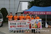 한국현대미술신문 신정은 기자 | 천안서북소방서는 26일 천안시민체육공원 일원에서 열린 ‘이봉주 마라톤대회’와 연계해 주택용 소방시설 설치 홍보활동을 전개했다. 이번 행사는 시민이 대거 참여하는 지역행사를 활용하여 주택용 소방시설의 중요성을 알리고 안전문화 확산에 기여하기 위해 마련됐다. 이날 소방교 정정민, 소방사 하동수·오승훈·주현민·김문찬은 “주택용 소방시설” 홍보 티셔츠를 착용하고 10km 코스를 달리며 시민들에게 소방안전의 중요성을 알렸다. 주택용 소방시설은 단독경보형 감지기와 소화기를 말하며, 화재 발생 초기 신속한 대피와 초기 진화를 가능하게 하는 필수 안전장비다. 두 시설 모두 단독주택과 공동주택(아파트ㆍ기숙사 제외)에 의무적으로 설치해야 한다. 소화기는 각 세대ㆍ층별 1개 이상, 단독경보형감지기는 방과 거실 등 구획된 실마다 1개씩 설치해야 한다. 김종욱 서장은 “시민들이 많이 참여하는 행사에서 주택용 소방시설의 중요성을 자연스럽게 알릴 수 있었다”며, “앞으로도 다양한 방법으로 안전문화가 생활 속에 정착될 수 있도록 노력하겠다”고 말했다.