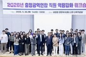 한국현대미술신문 신정은 기자 | 충청광역연합이 4개 시·도(대전·세종·충북·충남) 파견 직원들의 정책 이해도를 높이고 조직 결속력을 다지기 위한 본격적인 역량 강화 행보에 나섰다. 충청광역연합은 3월 26일 보람동 행복누림터에서 전 직원을 대상으로 ‘2026년 충청광역연합 직원 역량강화 워크숍’을 개최했다고 밝혔다. 이번 워크숍은 연합 직원들이 연합의 설립 취지와 주요 정책을 빠르게 숙지하고 향후 충청권 행정환경 변화에 능동적으로 대응할 수 있도록 마련됐다. 이날 워크숍에서는 최민호 충청광역연합장이 직접 강사로 나서 ‘행정환경에 따른 연합의 역할’을 주제로 특강을 진행했다. 최 연합장은 특강을 통해 초광역 협력체의 필요성을 강조하며, 충청권의 공동 번영을 위한 직원들의 사명감과 역할을 당부했다. 특히, 현대의 시대정신이 ‘에너지 확보, 기술 인력 양성, 기업 우호적 환경 조성, 물관리’임을 강조하며, 시대정신을 반영한 정책을 구상하고 추진하는 것이 공직자에게 필요한 자세라고 힘주어 말했다. 이어지는 강의에서는 대전연구원 염인섭 책임연구위원이 ‘연합의 출범 배경 및 역사,