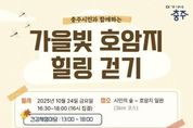 한국현대미술신문 신정은 기자 | 충주시는 걷기 좋은 가을을 맞아 오는 24일 시민의 숲과 호암지 일대에서 ‘가을빛 호암지 힐링 걷기’를 개최한다고 밝혔다. 이번 행사는 깊어가는 가을의 정취 속에서 시민들이 함께 걸으며 건강한 생활습관을 실천하고, 다양한 건강체험 프로그램을 통해 스스로 건강 상태를 확인할 수 있도록 마련됐다. 걷기 행사는 오후 4시 함지길(충주종합운동장 보조경기장 인근)에서 집결해 간단한 스트레칭 후 호암지 일부 구간을 걷고 오는 약 3km 코스로 진행된다. 코스 중간에는 체크포인트 이벤트와 버스킹 공연이 함께 마련돼 재미와 활력을 더하며 누구나 부담 없이 참여할 수 있는 프로그램으로 구성됐다. 본행사에 앞서 오후 1시부터는 ‘건강체험부스’가 운영된다. 이곳에서는 △혈압·혈당·체성분 검사 등 기본 건강 측정 △금연·절주·구강건강 등 건강생활실천 홍보 △치매 예방 캠페인 △풍선아트·양말목공예 등 다양한 참여형 프로그램이 마련돼 온 가족이 함께 즐길 수 있는 체험의 장이 될 전망이다. 특히 올해는‘보행측정장비’를 새롭게 도입해 참가자들의 보행 패턴과 균형 상태를