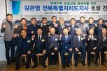 한국현대미술신문 기자 | 전북특별자치도는 지역 건설업계 간 소통 강화를 위해 ‘2026 전북건설단체연합회 신년인사회’를 개최했다고 22일 밝혔다. 전북건설단체연합회 주관으로 열린 이날 행사에는 김관영 전북자치도지사와 소재철 전북건설단체연합회장을 비롯한 전문건설협회, 기계설비협회, 건설기계협회, 엔지니어링협회, 소방시설협회, 전기공사협회, 정보통신공사협회, 건축사협회, 주택협회 등 10개 건설 관련 단체 대표 32명이 참석했다. 이번 신년인사회는 건설업계와 전북도가 함께 지역 건설산업의 현안과 향후 정책 방향에 대한 공감대를 확인하는 자리로 진행됐다. 행사는 참석자 소개와 인사말씀, 기념촬영, 만찬 순으로 진행됐으며, 지역 건설산업의 현안과 과제를 공유하고 협력 방안을 논의하는 자리로 꾸며졌다. 도는 이 자리에서 2026년도 건설 분야 도정 추진 방향으로 사회간접자본(SOC) 사업의 속도감 있는 추진과 공공건설 조기 발주 확대, 지역업체 참여 강화, 현장 중심의 소통 강화를 제시했다. 특히 오는 3월 시행 예정인 ‘전북특별자치도 지구단위계획 수립지침’을 통해 도내 아파트 건설사업에서 지