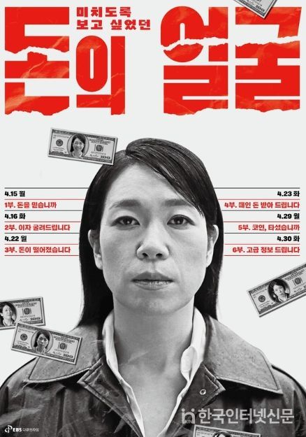 모두가 미치도록 보고싶어했던 돈의 진짜 얼굴을 추적할 경제 다큐멘터리 EBS 다큐프라임 ‘돈의 얼굴’은 6부작으로 오는 4월 15일(월)부터 30일(화)까지 3주간 매주 월, 화 밤 9시 55분 EBS 1TV에서 방송된다.