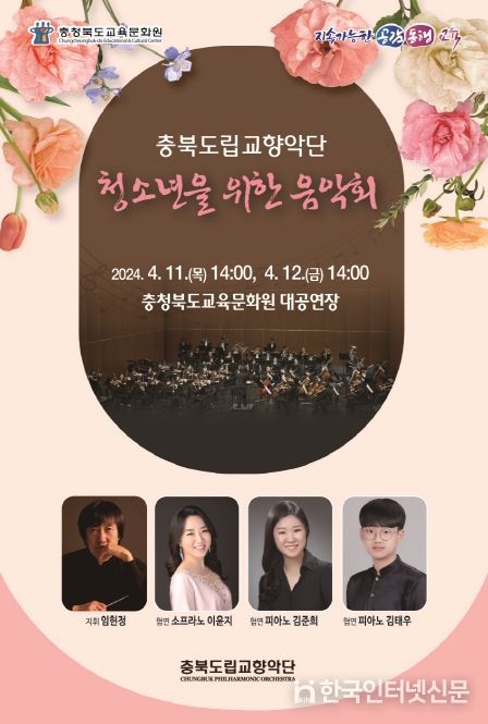 이번 기획 공연은 교육문화원이 주최하고, 충북도립교향악단이 기획하여 진행하는 특별한 행사로, 임헌정 예술감독 지휘아래, 생상스의 동물의 사육제, 아담스의 오페라 '투우사'중 ‘아! 어머님께 말씀드리죠’ 등을 연주하고 소프라노 이윤지, 피아니스트 김준희, 김태우 등 수준 높은 예술가의 협연으로 도내 청소년에게 감동을 선사할 예정이다.