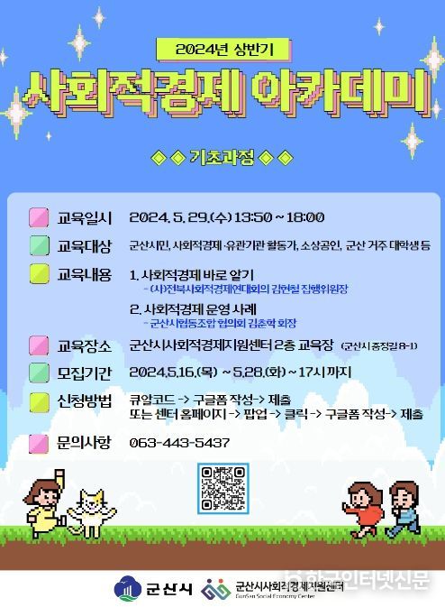 관내 사회적경제 활동가, 사회적경제에 관심있는 시민들은 28일까지 군산시 사회적경제지원센터 홈페이지 내 구글폼으로 신청하면 된다.