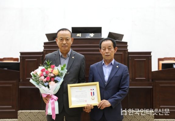 한국현대미술신문 신정은 기자 | 예산군의회 장순관 임시의장이 지난 26일 본회의장에서 대한민국시군자치구의회의장협의회가 수여하는 2024년도 ‘지방의정봉사상’을 전수받았다.