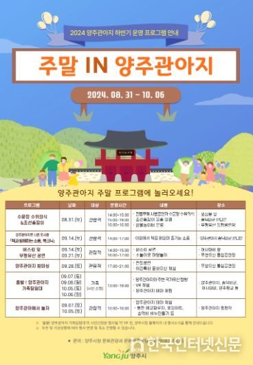 한국현대미술신문 배윤섭 기자 | 양주시는 오는 31일부터 10월 6일까지 공연과 체험 및 놀이로 구성된 프로그램 ‘주말 IN 양주관아지’를 운영한다고 8일 밝혔다.