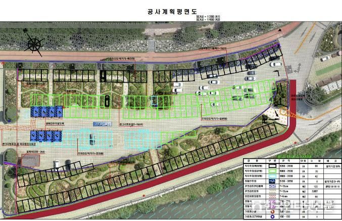 이번 공사는 장미공원 정문 주차장을 확충하는 것이 주요 내용으로 기존 주차구역 83면에 144면을 추가로 확장해 총 227면의 주차면적을 확보하는 것이 목표이다.