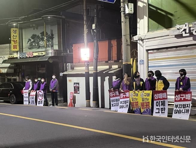 이날 캠페인은 성구매자들이 가장 많이 출입하는 금요일 밤 10시부터 새벽 3시까지 이어졌으며, ‘성매매집결지 폐쇄중’, ‘성구매, 아이들이 보고 있다’, ‘성구매 범죄’ 등의 내용이 담긴 팻말을 들고 성매매가 불법임을 알리는 방식으로 진행됐다.