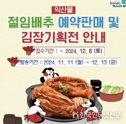 한국현대미술신문 강경숙 기자 | 익산시가 김장철을 맞아 '마을전자상거래 김장 기획전'을 진행한다.