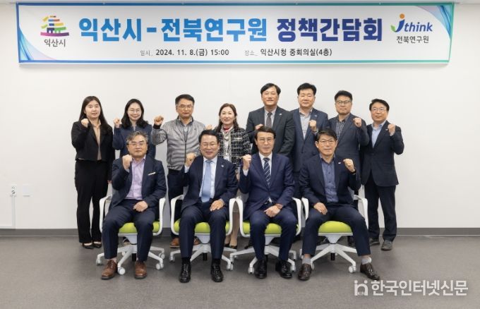 익산시는 8일 시청 중회의실에서 정헌율 시장과 전북연구원 이남호 원장, 김보국 연구본부장, 김수은 책임연구위원 등 양 기관 관계자 15명이 참석한 가운데 정책간담회를 개최했다.