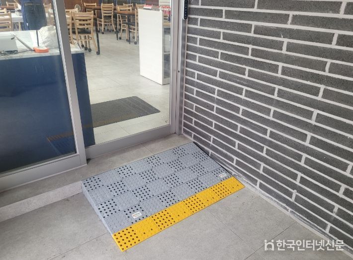 '장애인·노인·임산부 등의 편의증진 보장에 관한 법률'에 따라 일정 규모 이상의 시설에 경사로 설치는 의무지만 300㎡ 미만의 소규모 다중이용시설은 의무 사항이 아니기 때문에 경사로가 미설치 된 곳이 많다.