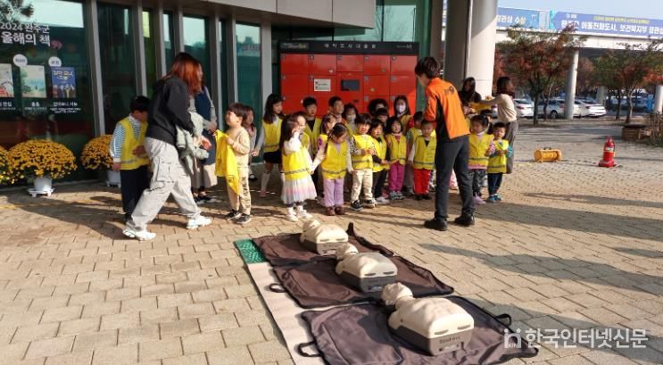 한국현대미술신문 강경숙 기자 | 완주군이 완주소방서와 함께 중앙도서관 견학 참여 어린이를 대상으로 소방안전교육을 실시했다.