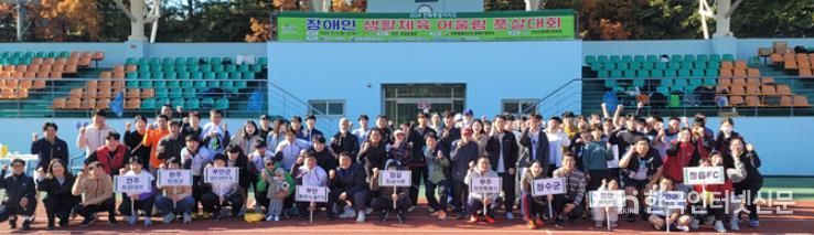 한국현대미술신문 강경숙 기자 | 지난 9일 진안군 공설운동장에서 개최된 '2024 전북특별자치도 장애인 생활체육 어울림 풋살대회(주최·주관 전북특별자치도장애인체육회, 진안군장애인체육회)'가 14개 팀, 150여 명이 참여하여 성료되었다.