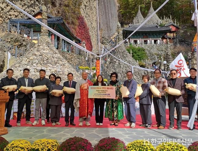 한국현대미술신문 강경숙 기자 | 한국불교태고종 마이산탑사는 지난 9일 ‘가을 천지기도 및 백미나눔 전달식’을 실시했다.