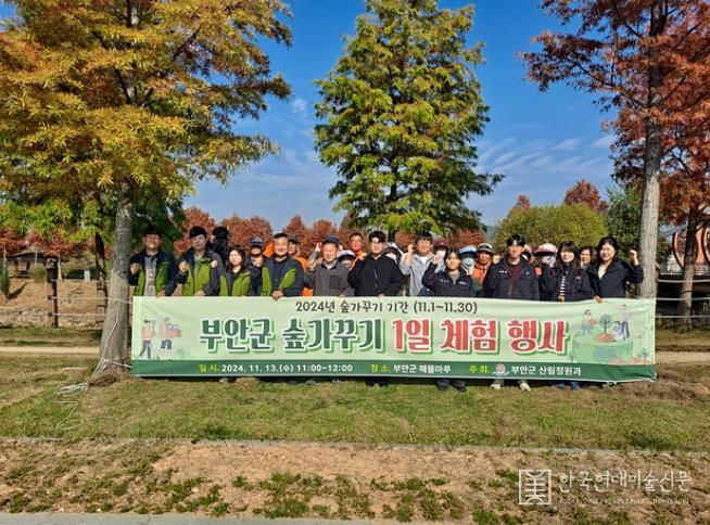 한국현대미술신문 강경숙 기자 | 부안군은 11월 숲가꾸기 기간을 맞아 숲의 소중함과 중요성을 일깨우는 계기를 마련하기 위해 산림정원과 30명, 산림 관련 종사자 20명 등 약 50명이 13일 숲가꾸기 1일 체험 행사를 개최했다고 밝혔다.