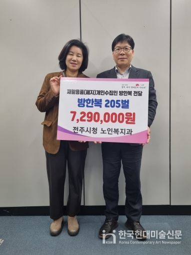 생계를 위해 쉬지 않고 일하는 전주시 저소득 재활용품(폐지) 수거 어르신을 위해 방한복 205벌(환가액 729만 원)을 지원하여 따뜻한 겨울나기를 준비할 수 있도록 했다.