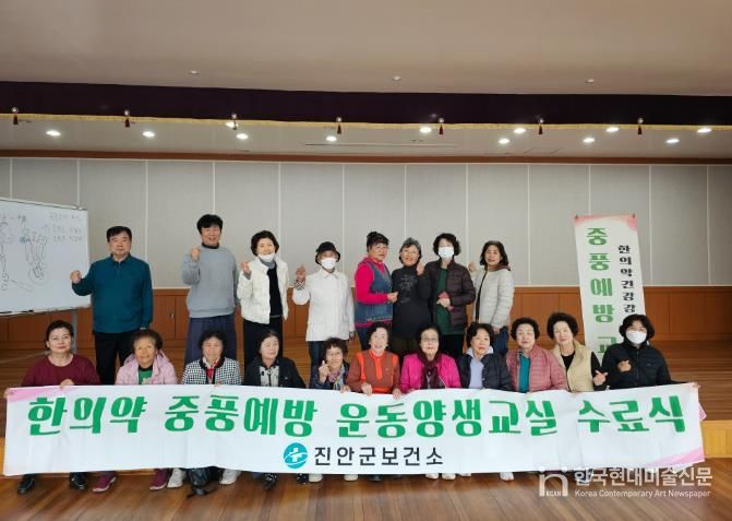 한국현대미술신문 강경숙 기자 | 진안군은 중풍에 대한 이해를 높이고 지역주민 스스로 중풍을 예방하고 관리할 수 있는 능력을 함양시키고자 지난 2월부터 11월까지 매주 목요일 지역주민 60여명을 대상으로 2회기에 걸쳐 『한의약 중풍예방교실』을 운영하고 21일 보건소 2층 강당에서 수료식을 가졌다.
