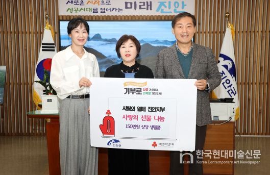 한국현대미술신문 강경숙 기자 | 사랑의 열매 봉사단(단장 오복덕)은 25일 진안군에 150만원 상당의‘사랑의 열매 생필품 꾸러미’를 전달했다.