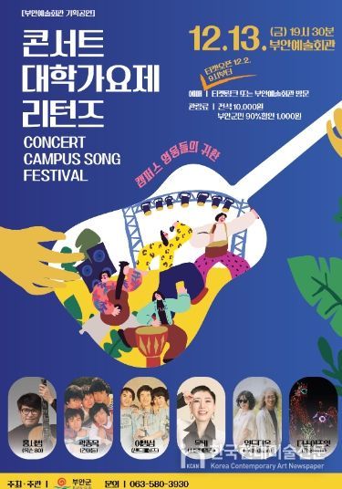 한국현대미술신문 강경숙 기자 | 부안군이 오는 12월 13일 오후 7시 30분, 부안예술회관에서 ‘대학가요제 리턴즈’ 공연을 개최한다.