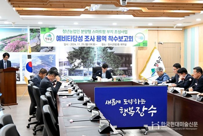 한국현대미술신문 강경숙 기자 | 장수군은 25일 군청 회의실에서 ‘청년농업인 분양형 스마트팜 부지 조성사업’ 예비타당성 조사 용역 착수보고회를 개최했다.