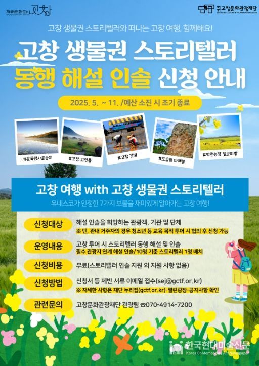 한국현대미술신문 기자 | 고창문화관광재단이 관광객을 대상으로 이야기꾼(스토리텔러)와 함께하는 동행 해설 프로그램을 2일부터 운영한다.