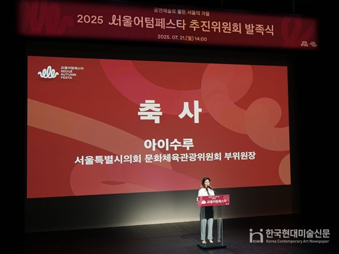 한국현대미술신문 배윤섭 기자 | 서울특별시의회 시의원 아이수루 문화체육관광위원회 부위원장(더불어민주당·비례)이 21일 오후 3시, 종로구 동숭길 서울문화재단 대학로센터 일대에 위치한 ‘대학로극장 쿼드’에서 개최한 ‘2025 서울어텀페스타(’25.10.4.-11.12.) 추진위원회 발족식’에 참석해 자리를 빛냈다.
