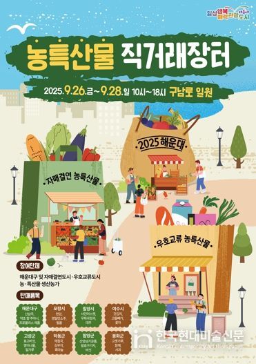 한국현대미술신문 정소영 기자 | 해운대구는 26일에서 28일까지 구남로에서 자매결연도시·우호교류도시 농특산물 직거래장터를 연다.