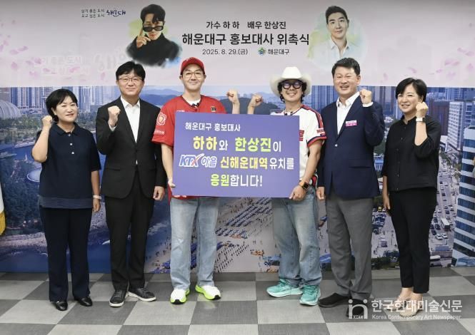 한국현대미술신문 정소영 기자 | 지난 8월 29일 해운대구 홍보대사로 위촉된 가수 하하 씨와 배우 한상진 씨가 ‘KTX-이음 신해운대역 유치’ 응원에 나섰다.