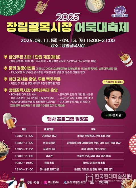 한국현대미술신문 정소영 기자 | 부산시는 오는 11일부터 13일까지 3일간 오후 3시부터 오후 9시까지 사하구 장림 골목시장에서 '장림골목시장 어묵대축제'를 개최한다고 밝혔다.