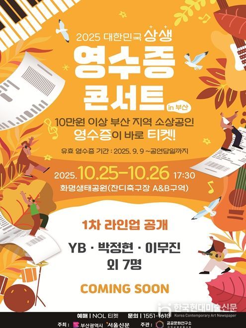 콘서트는 10월 25일부터 26일까지 화명생태공원에서 열리며, 부산 지역 소상공인 결제 영수증(10만 원 이상)을 공연 관람권(티켓)으로 인정하는 전국에서 유일한 상생형 문화 축제로, 단순한 공연 관람을 넘어 소비와 문화가 결합한 새로운 축제 모델을 선보인다.