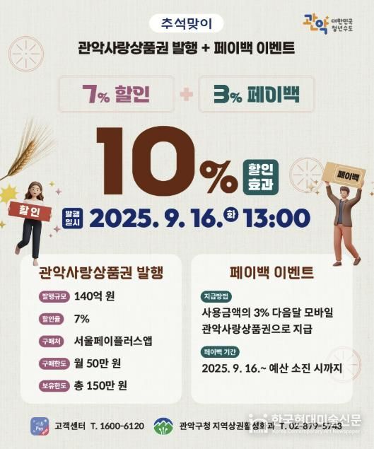 한국현대미술신문 배건 기자 | 관악구가 다음 달 긴 추석 연휴를 앞두고 오는 16일 오후 1시부터 140억 원 규모의 관악사랑상품권을 발행한다.